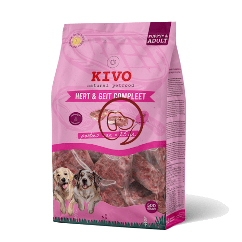 Kivo hert en geit porties bevat geen granen, geur-, kleur- of smaakstoffen. De pure ingrediënten zorgen voor een optimale opname van voedingsstoffen en dragen bij aan een glanzende vacht en gezonde huid. Daarnaast ondersteunt het de spieropbouw en energieniveaus van jouw hond.