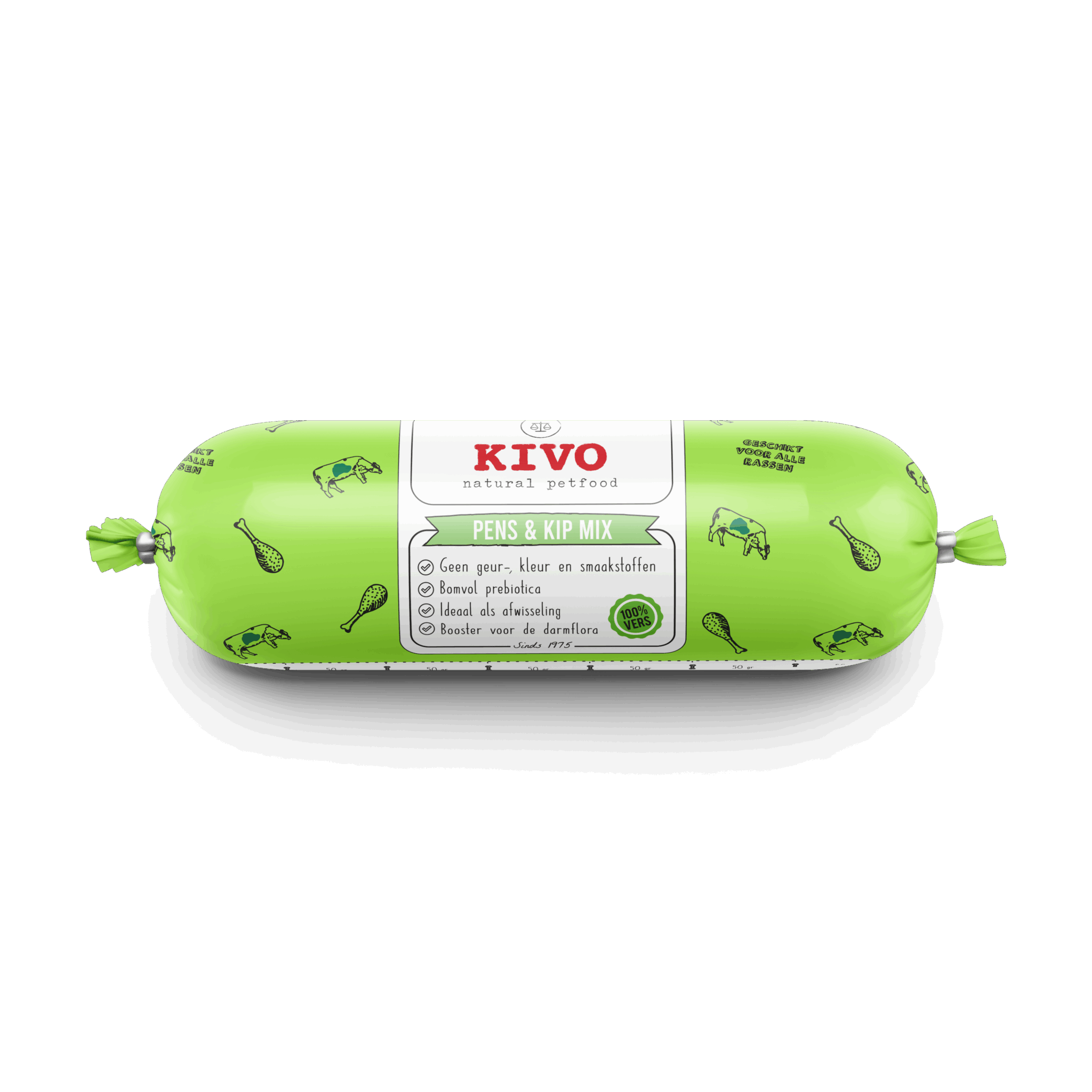 Daarom sluit Kivo pens en kip mix goed aan bij honden die moeite hebben met andere diersoorten of behoefte hebben aan variatie in het menu. Vervolgens zorgt de toevoeging van spiervlees, vleesbot en organen voor een volwaardig voedingsprofiel dat alle essentiële bouwstoffen bevat. Daarnaast is deze voeding volledig vrij van granen, kunstmatige toevoegingen en vulstoffen, zodat je jouw hond een transparante en pure maaltijd geeft.