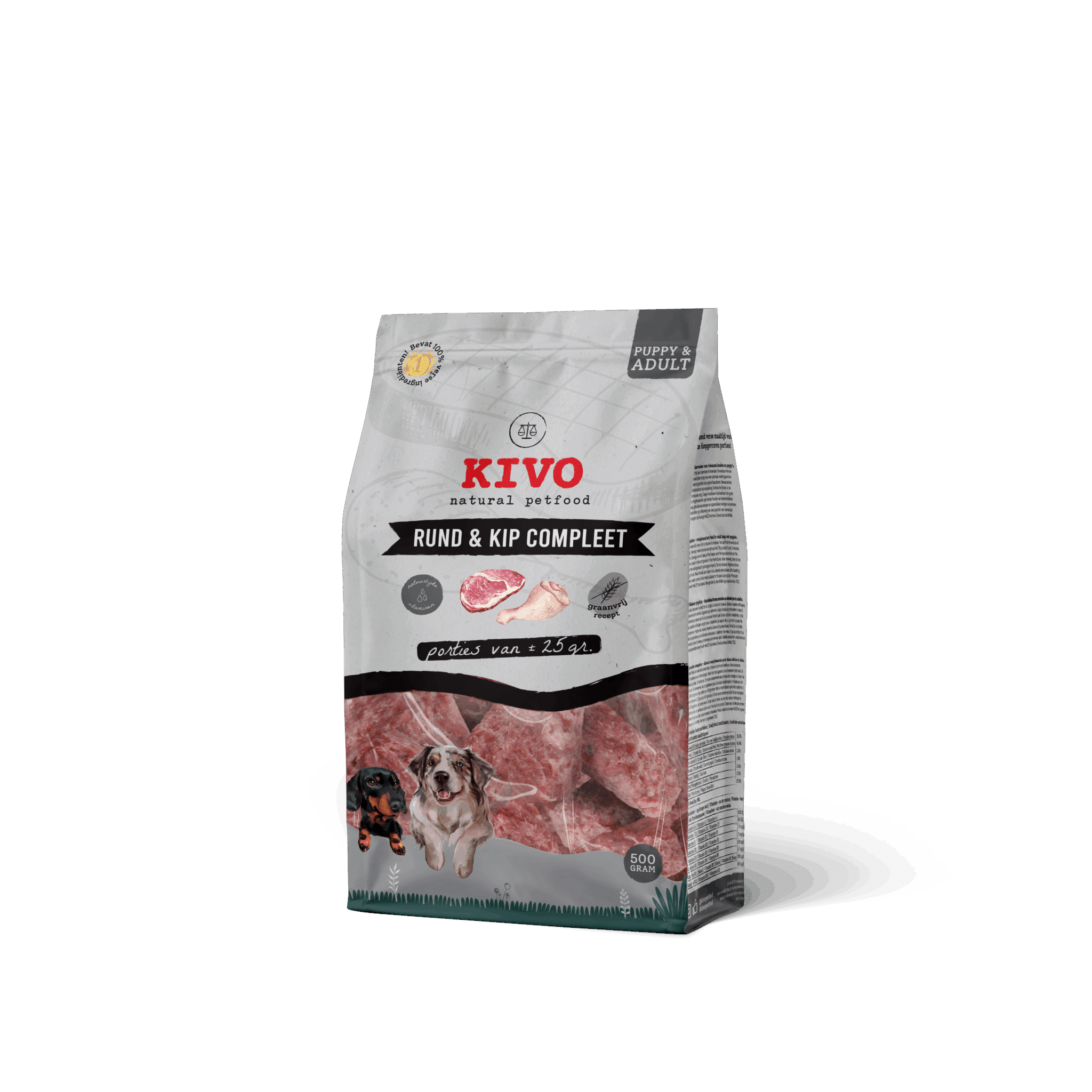 Met Kivo rund en kip porties kies je voor kwaliteit, gemak en pure voeding zoals de natuur het bedoeld heeft.
