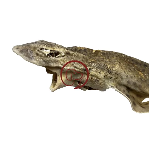Een zeer unieke snack in ons assortiment. De kathaai is een haaisoort die voorkomt in diverse wateren waaronder de Noordzee. De kathaai is van binnen schoongemaakt en ontdaan van organen en vervolgens gedroogd.