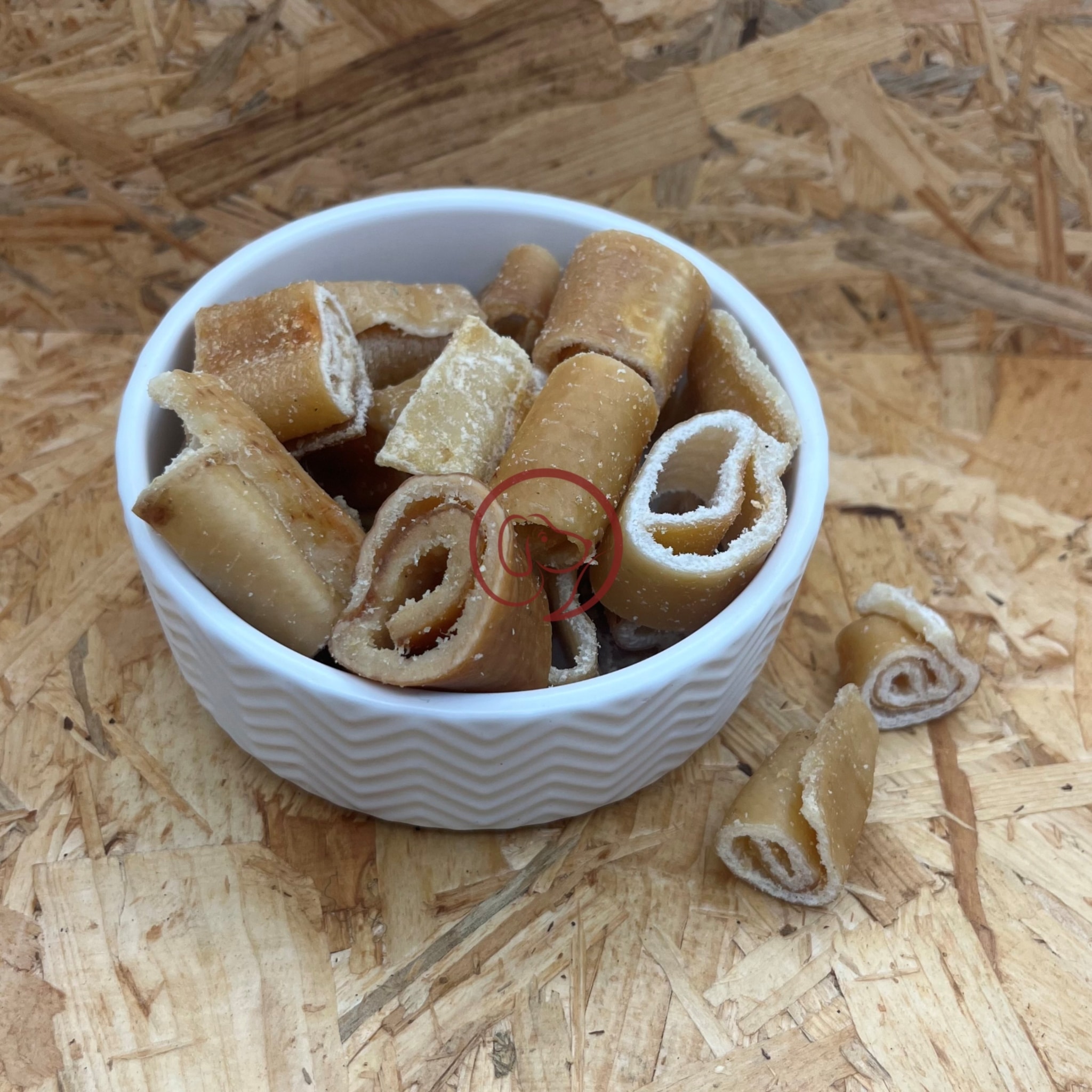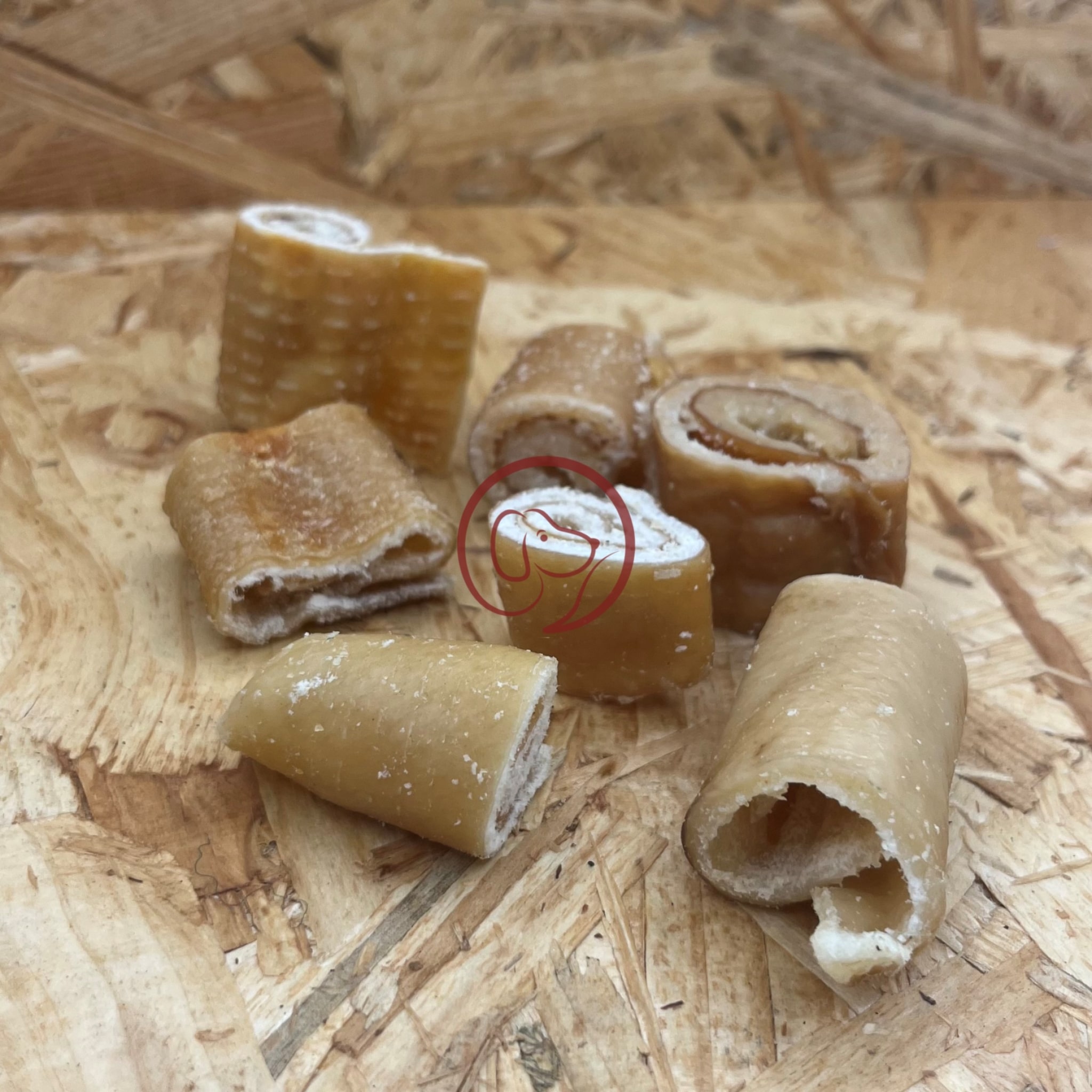 Varkenshuidrolletjes zijn een heerlijke en natuurlijke kauwsnack voor honden. Deze smakelijke traktaties worden gemaakt van 100% gedroogde varkenshuid en zijn vrij van kunstmatige toevoegingen of conserveringsmiddelen. Door hun stevige structuur bieden ze een langdurige kauwervaring die niet alleen het gebit helpt reinigen, maar ook verveling tegengaat en stress kan verminderen.