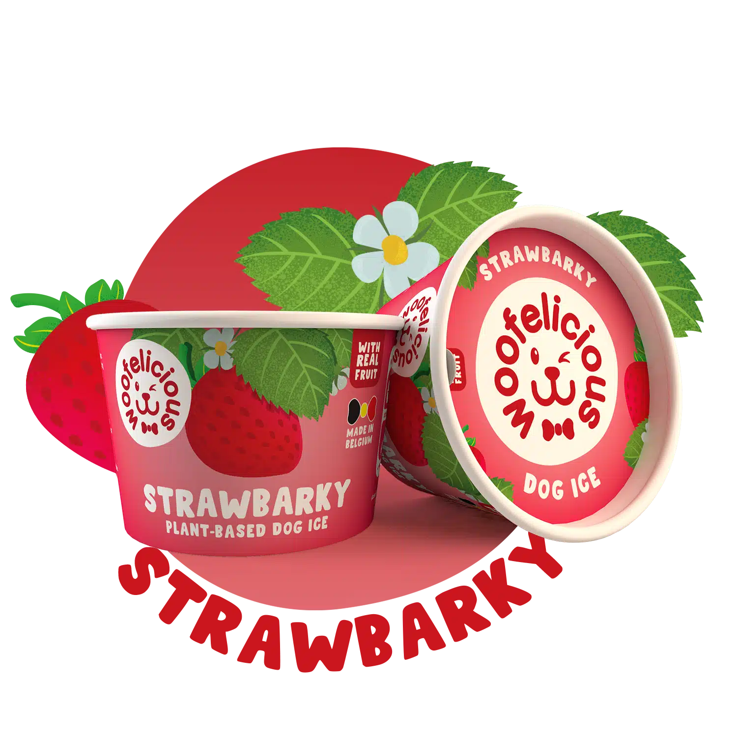 Woofelicious strawbarky is een heerlijk verkoelend hondenijsje met een zomerse aardbeiensmaak, speciaal ontwikkeld om jouw hond te laten genieten van een frisse en smakelijke traktatie. De combinatie van een zachte ijsstructuur en een fruitige smaak maakt dit ijsje direct aantrekkelijk. Daardoor is het niet alleen een tussendoortje, maar ook een moment van pure verwennerij.