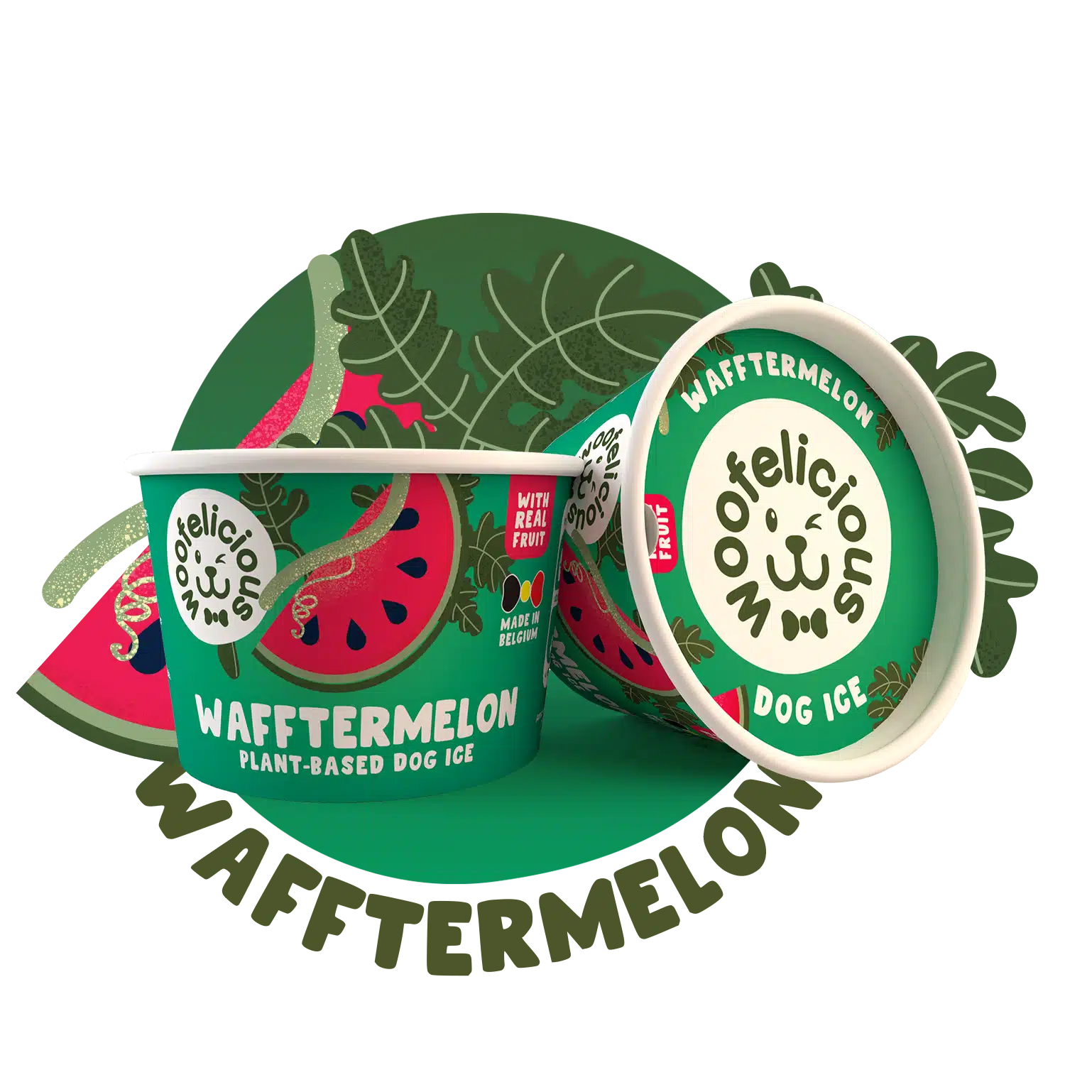 Woofelicious wafftermelon is een verfrissend hondenijsje met een zomerse twist, speciaal gemaakt om jouw hond te laten genieten van een koel en smakelijk moment. De lichte, frisse smaak van watermeloen zorgt direct voor enthousiasme, terwijl de ijzige structuur helpt om je hond aangenaam af te laten koelen. Daardoor is dit ijsje een ideale traktatie tijdens warme dagen of na een actieve wandeling.