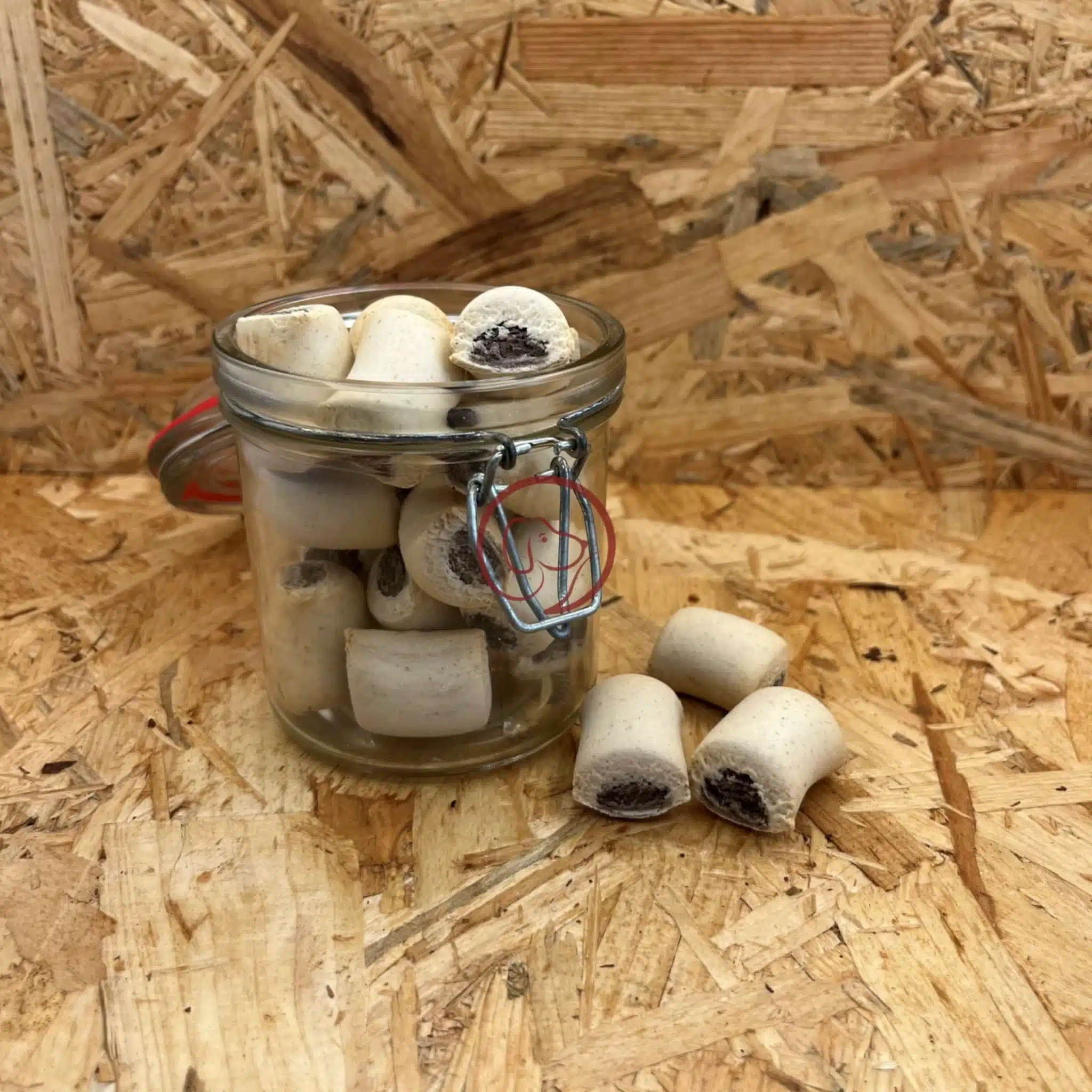 Bewaar de mergkoekjes altijd op een donkere en koele plaats, maar niet in de koelkast of vriezer. Bewaar snacks altijd in een afgesloten zak of pot.