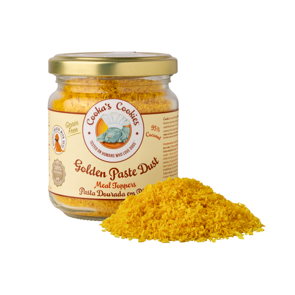 Cooka Cookies Golden Paste Dust is een natuurlijk supplement voor honden op basis van kurkuma. Dit product is geïnspireerd op de bekende golden paste en biedt een eenvoudige manier om kurkuma toe te voegen aan de dagelijkse voeding. Daardoor is het bijzonder geschikt voor hondeneigenaren die hun hond op een natuurlijke manier willen ondersteunen. Bovendien staat kurkuma bekend om zijn veelzijdige eigenschappen binnen een gebalanceerd voedingspatroon.